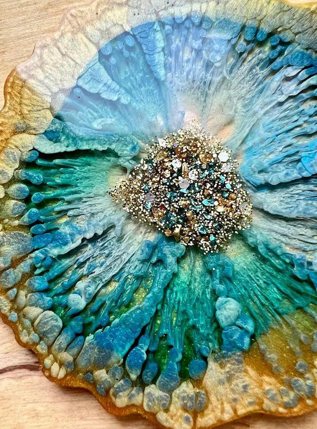 Use it clear as a glass-like top coat on artwork or tinted with pigments to create fluid art, geodes, ocean art, coasters, jewelry, crafts, tumblers, other home decor items. The possibilities are endless!